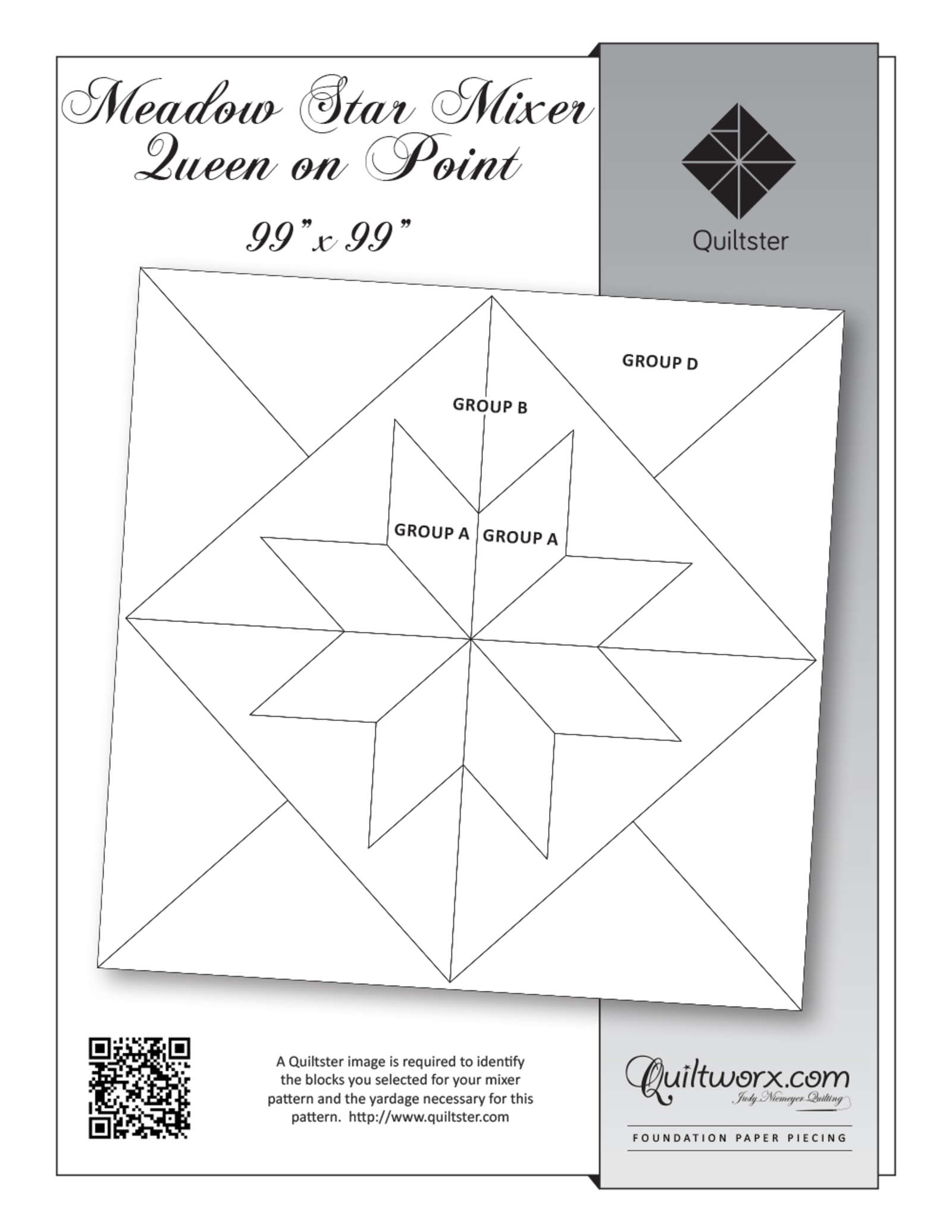 The Meadow Star Mixer Queen On Point requires the purchase of 1 pattern (which is the introduction booklet) plus block designs, sold separately. (scroll down to choose block designs and view quantities required). There are 3 distinct block groups: A (diamonds), B (borders to square off the diamonds) and D (borders). Customize this pattern in the Quilt Planner to view your block designs in a project. The pattern (introduction booklet) includes all of the information that is common to any combination of block designs for this pattern including how to find corrections, general pattern information, supply lists and the final assembly steps (which are the same regardless of how you combine the interchanging blocks). This layout can be used to test out square up options for the Rainforest Blossoms and Sandstone Spires (publication in January 2020). Simply load the diamond and square up border blocks used in each of those quilts, then test out your favorite D border for options. When ordering elements for this pattern, make sure you have the Meadow Star Queen On-Point Mixer Introduction Booklet, then your desired center diamonds and B Borders. If you are expanding a previously published design, you will need the Mixer Introduction and the Border of your choice in addition to the original pattern. Once you purchase this pattern, you do not need to purchase it again for future designs of the same size, you need only purchase the block options for a new quilt and reuse the pattern instructions to put it together. To find more mixer patterns, filter for Mixer Patterns under Quilt Patterns. Happy Quiltstering!