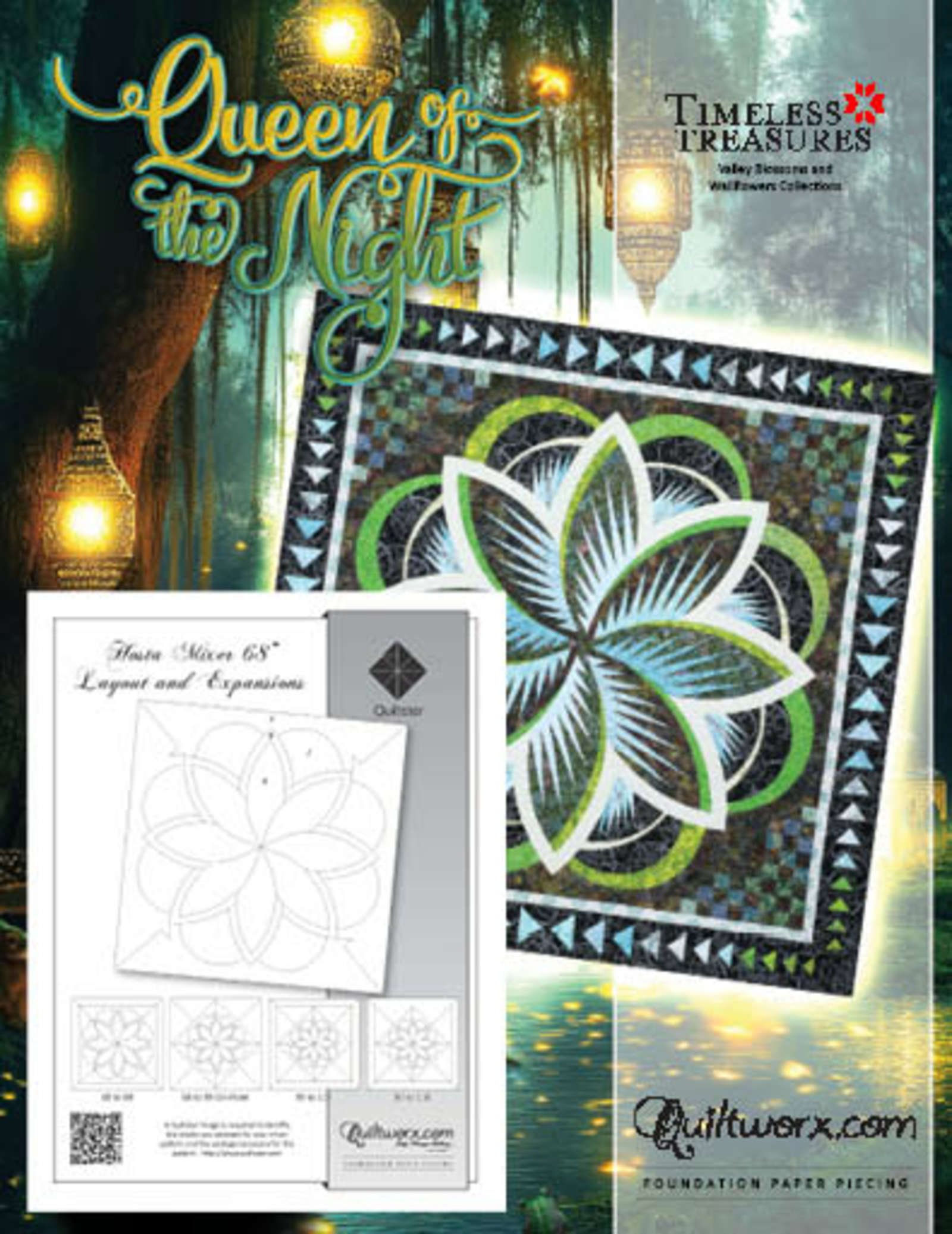 Designed by Quiltworx.com, the Queen of the Night King Expansion finishes at 118"x118". This layout combines the original 80”x80" Queen of the Night pattern with the 277-H King On-Point Expansion Border of your choice to bring it to its full 118” size. To get the 118" pattern, add the pattern to your cart as well as your choice of block options below. To audition borders, click “Create Project” to open this layout in the Quilt Planner. Once you’ve designed your perfect combo, add the entire project to your cart, with or without fabric. Happy Quiltstering!